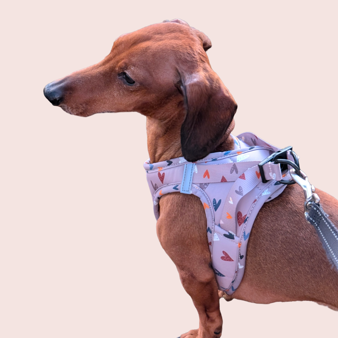 Sweet Love verstelbaar harnas in taupekleur met kleine hartjes.